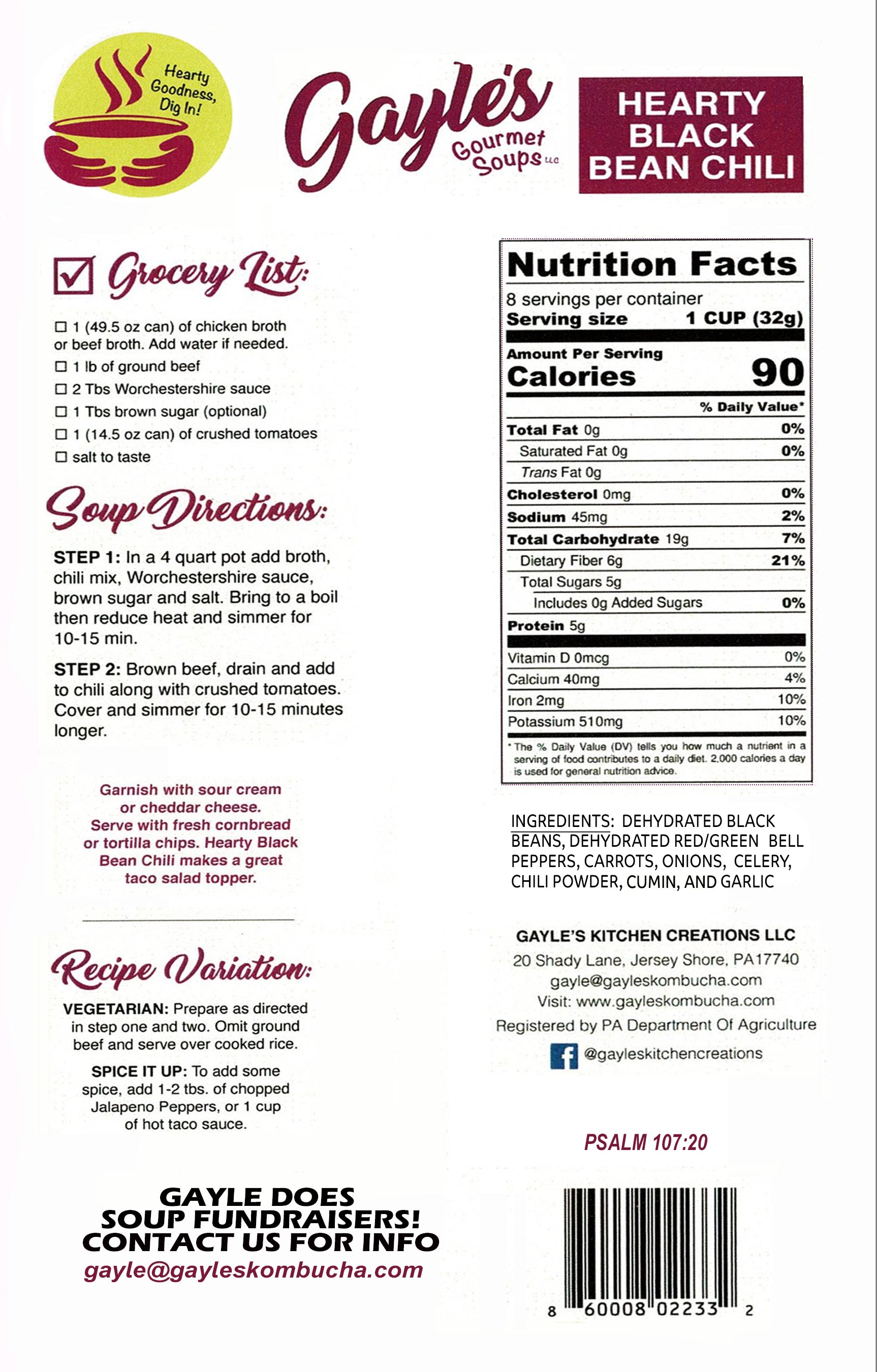 Hearty Black Bean Chili - Gayle's Gourmet Soups